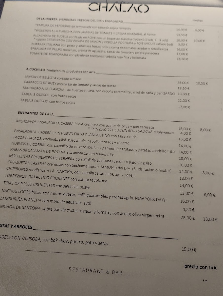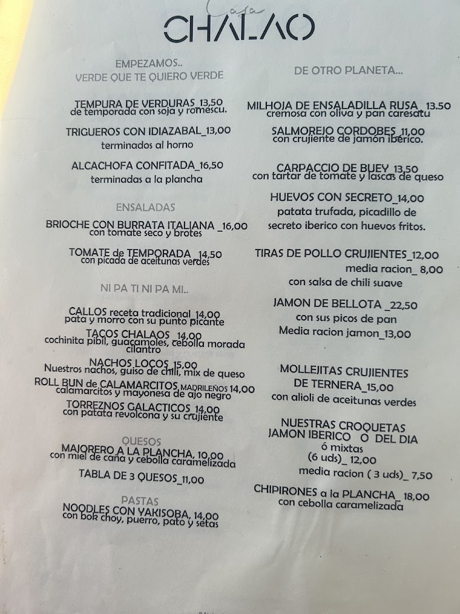 Casa Chalao offers a menu that blends comforting Spanish flavors with a relaxed and approachable vibe, ideal for casual gatherings and leisurely meals. The selection balances hearty main dishes and lighter bites, making it easy to find something satisfying whether you’re stopping by for lunch, sharing plates at dinner, or enjoying a relaxed weekend treat.